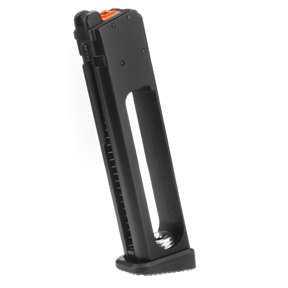 Das Original Modify-Tech Ersatzmagazin kommt hier in der Standard Variante für 12g CO2 Kapseln und ist nur passend bei der Modify PP-2K GBB Serie. Das Magazin fasst ca. 22 6mm BB Rundkugeln. Weiterhin wird im Innern des Magazins eine 12g CO2 Kapsel eingesetzt.