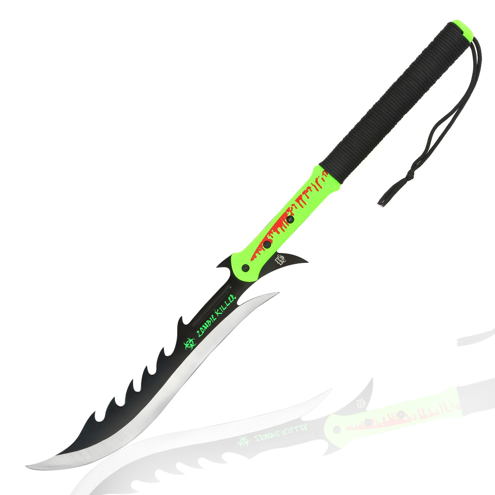 Das Zombie Hunting Knife ist gut ausbalanciert und kann mit zwei Händen geführt werden. Um mehr Halt zu bieten ist das Griffstück mit einer schwarzen Nylonschnur umwickelt.