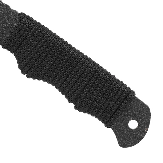 Das Multifunktions-Beil kommt mit einer rostbeständigen, robusten Stahlklinge. Im Beilkopf befinden sich integrierte Schraubenschlüssel mit den Größen 10,14,19. Zwei Meter Paracord um das Griffstück sorgen bei Nässe für sicheren Halt.
