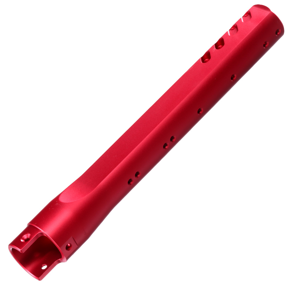 Der Außenlauf im interessanten Hunter Style von Narcos Airsoft wird besonders präzise im CNC-Herstellungsverfahren komplett aus T6 6061 Flugzeug-Aluminium gefertigt. Aufgrund dieser Eigenschaft ist der Außenlauf besonders passgenau hergestellt und lässt sich einfach und schnell montieren. schen. Neben einem hochwertigeren Eindruck sorgt der Lauf aus Metall auch für mehr Stabilität im Einsatz. Der Hunter Außenlauf ist etwas länger als der Standard Außenlauf der AAP-01 Pistole. Dank dieser Eigenschaft kann aus dem Zubehörmarkt wahlweise ein längerer Innenlauf eingebaut werden, wodurch die Pistole mehr Schusspräzision erreicht.