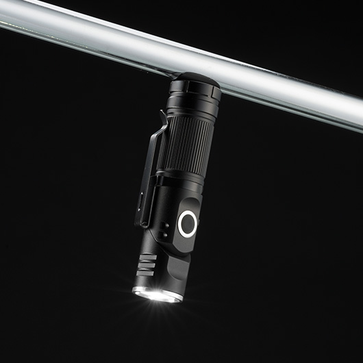 Als zusätzliche Funktion hat die Lampe eine Strobe Modus mit starker Blendwirkung verbaut. Ein weiteres Gimmick ist der im Boden befestigte Magnet und der 90° schwenkbare Kopf. Die Leistung wird von einem 16340 Lithium Akku mit 700mAh erzeugt.
