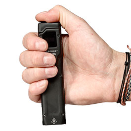 Der 1700mAh Li-Ionen-Akku hält bis zu 55 Stunden am Stück und lässt über den seitlichen Ladeport wieder aufladen. Ein praktischer Lockout-Modus verhindert ein ungewolltes Aktivieren der Lampe, um Energie zu sparen. An dem OLED-Display können die verbliebene Batterie-Spannung, Leuchtzeit, Energie sowie aktuelle Sperr-Modi und Helligkeitsstufen anzeigen.