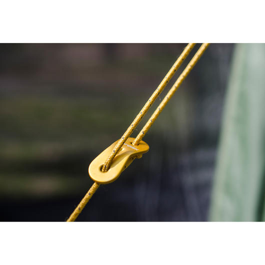 Die spezielle Kontruktion der Schieber ist benutzerfreundlich ohne scharfe Kanten. Der Schieber blockiert die Spannleine in einem bestimmten Winkel und hält diese sicher und eng zusammen. Gleichzeitig lässt sich der Slider aber auch einfach wieder lockern und verschieben.