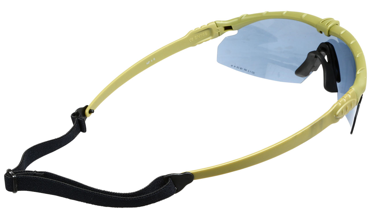 Die Gläser sind bereits im Auslieferungszustand mit einer praktischen Anti-Fog-Beschichtung versehen. Diese verhindert ein Beschlagen der Gläser, wodurch auch ein Benutzen an nassen / feuchten Tagen kein Problem darstellt. Da die Battle Pro Brille speziell für Airsoft-Sportarten und Outdoor-Aktivitäten konzipiert wurde, wurden die Gläser auch mit einem Kratzschutz versehen. Damit die kompletten Augen geschützt sind, wurde das Brillenglas links und rechts etwas verlängert. Diese Eigenschaft verhilft zu einem besseren Seitenschutz.