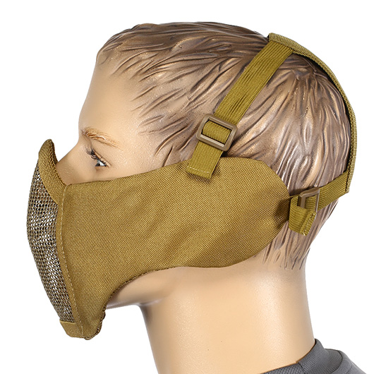 Die Maske wurde so konstruiert, dass sie den kompletten vorderen und seitlichen unteren Gesichtsbereich abdeckt. Durch die Formgebung besitzt die Maske einen interessanten Look im coolen Spartan-Design. Die Maske eignet sich ideal für Airsoftspiele oder andere Outdoor Games.