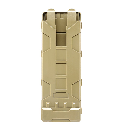Die Shotgun Patronen Tasche von Nuprol ist aus robustem Verbundkunststoffmaterial hergestellt und an der Hinterseite mit zwei Schlaufen für Molle Platformen ausgestattet. Hierdurch ist die Tasche universell anbringbar, auch an Gürteln. Innerhalb der Pouch befindet sich ein Federzug, der die Patronen immer sicher nachführt.