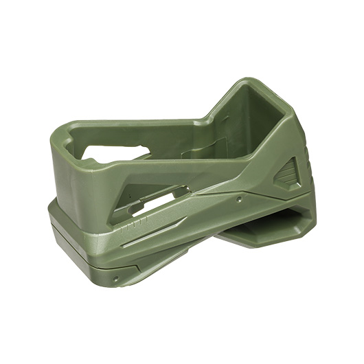 Die Magazin-Bodenplatte bzw. die Magazine Grip Plate von Nuprol ist eine praktische Erfindung und besonders einfach zu montieren. Hierzu einfach ein Standard M4 AEG bzw. S-AEG Magazin zur Hand nehmen und die Nuprol MF Magazin-Bodenplatte über die Unterseite des Magazins schieben - fertig! Die Grip Plate bleibt aufgrund der Formgebung und dem rutschhemmenden Gummimaterial sicher an ihrem Platz. Mitgedacht wurde auch beim Design, wodurch auch Hi-Cap Magazine nach der Montage weiter an der Unterseite aufgezogen werden können.