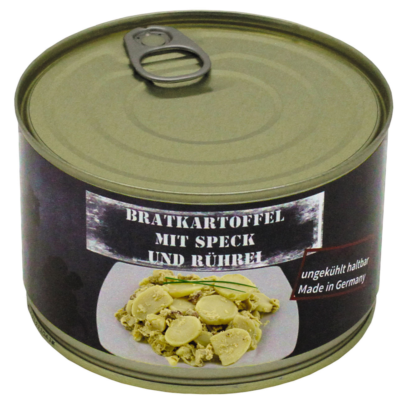 Für die einfache Zubereitung unterwegs, einfach die geöffnete Dose kurz auf dem Campingkocher erwärmen. Bei Bedarf lässt sich der Inhalt auch kalt verzehren. Natürlich kann die Mahlzeit auch klassisch in einem Topf auf dem Herd erwärmt werden.