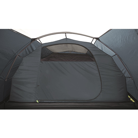 Beim Cloud 5 wird das Außenzelt zuerst aufgebaut. So kann man bei Regen das Innenzelt im Trockenen einhängen. Dunkle Zeltdecke und Wände im Schlafbereich verbessern die Schlafqualität. Perfekt für alle, die nicht gleich bei den ersten Sonnenstrahlen geweckt werden wollen. Durch die getönten Fenster mit UV-Schutz lässt sich die Umgebung beobachten, selbst bei Regen. Der herausnehmbare, vollständig versiegelte Boden ist wannenförmig, wodurch das Eindringen von Feuchtigkeit oder Insekten verhindert wird.