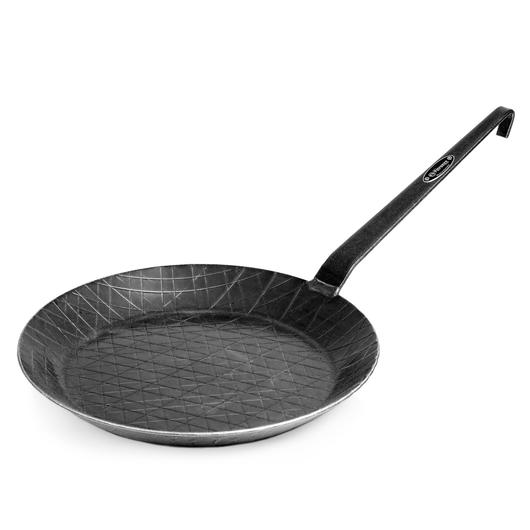 Diese Pfanne aus wiederstandsfähigem und langlebigen Schmiedeeisen besticht durch seine top Qualität und mit einer starken Wärmeleitfähigkeit, hierdurch wird die Hitze der Pfanne direkt an das Bratgut weitergegeben. Diese Pfanne liefert auf allen Herdarten und offenem Feuer ein geschmacklich einzigartiges Bratergebnis. Bereits nach dem ersten Gebrauch bildet sich eine versiegelnde Schutzschicht auf der Pfanne. Die Pfannenoberfläche wird dunkler und robuster hierdurch wird vermieden das das Bratgut anhaftet.