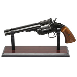 Durch den Tischständer können besondere Revolver Waffen sehr gut in Scene gesetzt werden. Der Tischständer ist auf der Unterseite mit Filz bezogen damit auch auf rutschigem Untergrund ein sicherer stand gewährleistet ist.