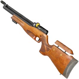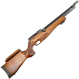 Für individuelle Anpassung ist der Abzug einstellbar und der Hammer individuell regelbar. Der integrierte Air Stripper Mündungsdämpfer und der gezogene Stahl-Lauf mit 1/2" UNF Laufgewinde sorgen für angenehmes Schießen. Der extrem hochwertige Walnuss-Echtholzschaft bietet Dir sicheren Halt, die verstellbare Wangenauflage und die gummierte Schaftkappe maximiert den Komfort erheblich.