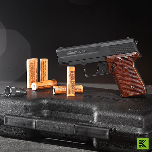Bei der Röhm RG 300 handelt es sich um eine Gas- Signalpistole im Kaliber 6 mm mit zuverlässige Funktion und ausgereifter Konstruktion . Brünierte Oberfläche. Das Modell ist mit ausklappbaren Patronenauswerfer und Dreistellungs-Sicherungshebel ausgestattet.