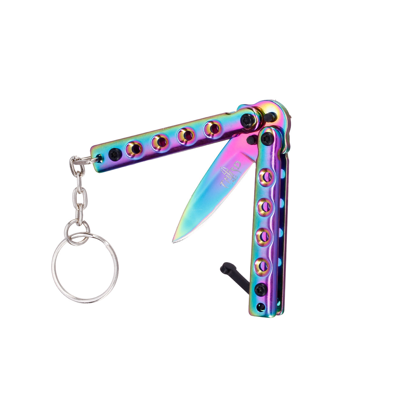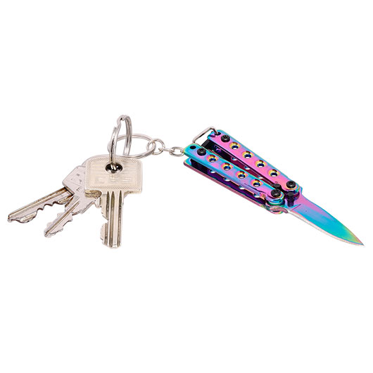 Dieser Schlüsselanhänger kommt in Form eines Butterfly-Messers, welches sich ausklappen und feststellen lässt. Die Klinge besteht aus rostfreiem 420er Edelstahl welcher eine lange Haltbarkeit gewährleistet.