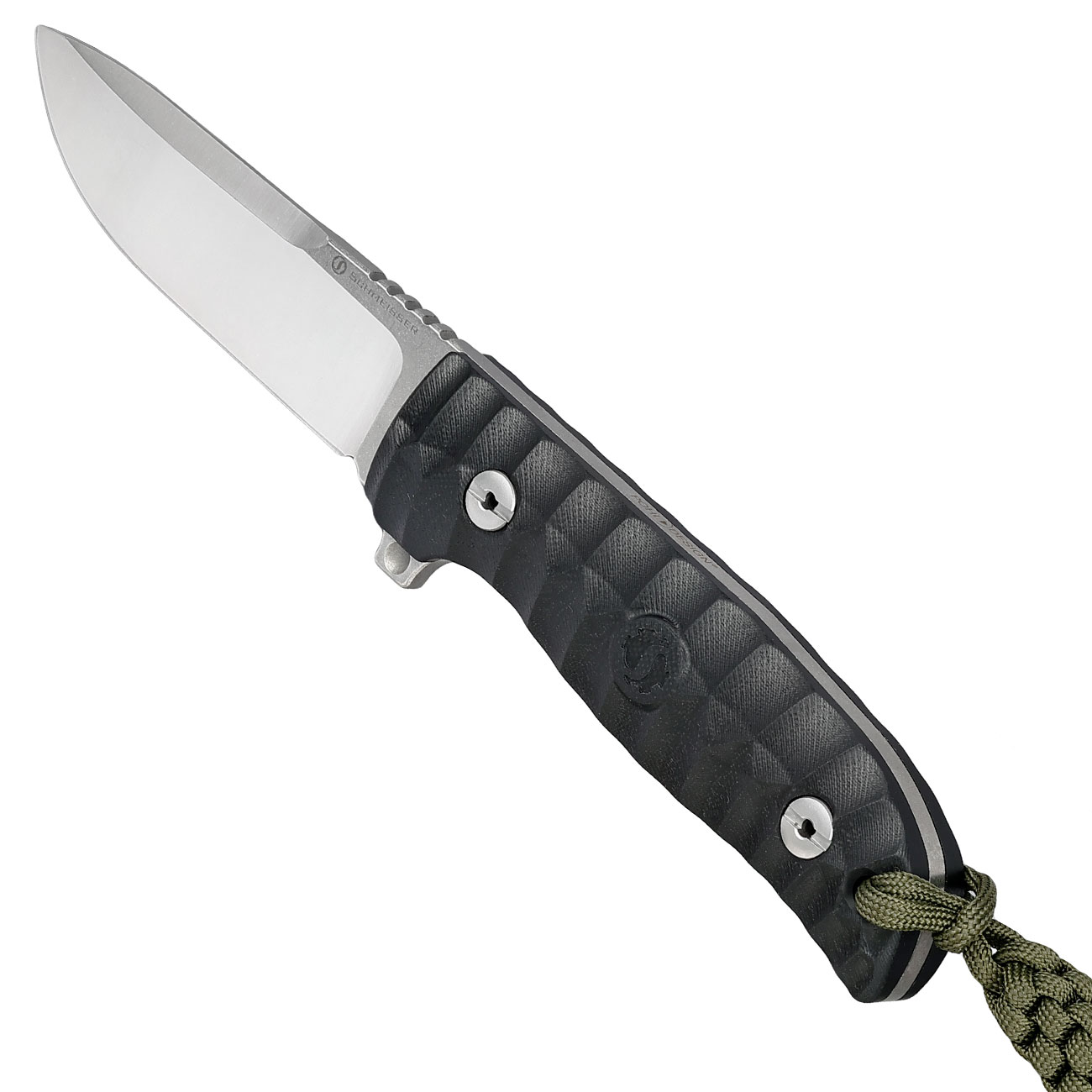 Das Hugo One ist das hochwertige Ergebnis einer Kooperation zwischen Schmeisser und Pohl Force. Das Outdoormesser vereint die hohen Qualitätsansprüche beider Hersteller in einem einzigartigen und robusten Allrounder. Das Hugo One kommt mit einer satinierten Klinge aus rostfreiem D2-Stahl mit partiellem stonewash-Finish. Der Stahl zeichnet sich durch seine hervorragende Härte, Schärfeigenschaften und Schnitthaltigkeit aus. Dank der Full-Tang Bauweise und einer beeindruckenden Klingenstärke von 5mm ist das Messer vor allem für härtere Einsätze perfekt geeignet.
