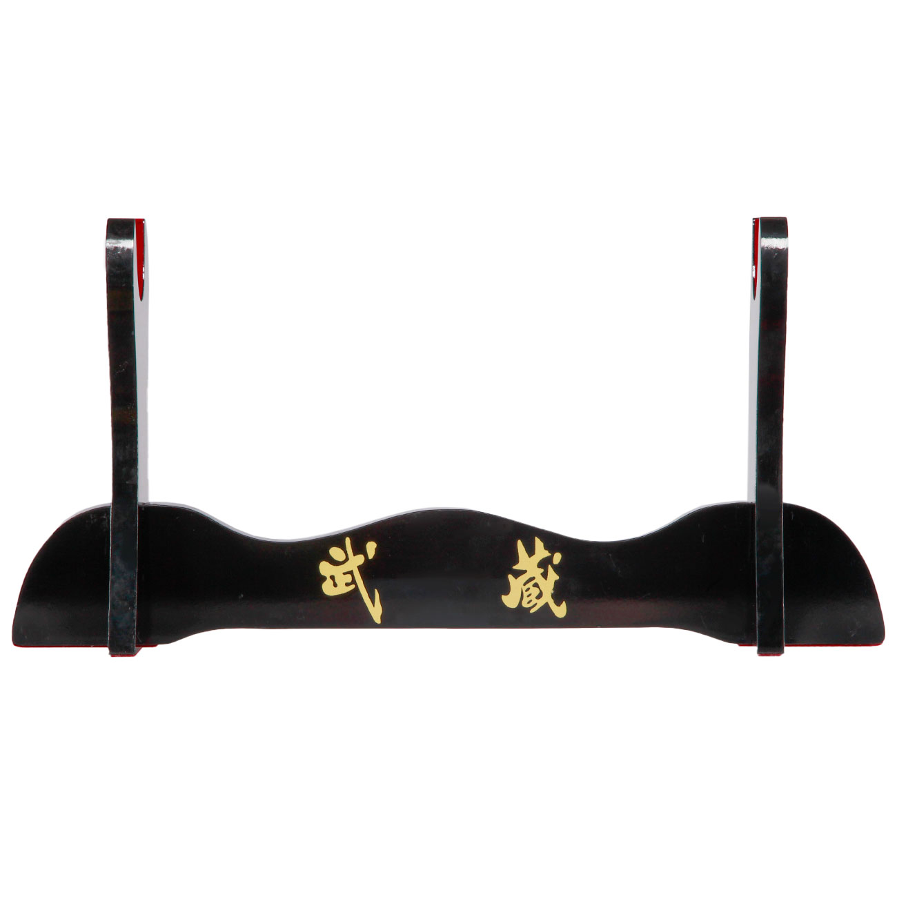 Verleihe deinem Zuhause einen Hauch von fernöstlicher Mystik und präsentiere dein Katana oder Samuraischwert auf diesem hochwertigen Schwertständer in elegantem Hochglanzschwarz. Die asiatische Inschrift auf der einen und der Musashi Schriftzug auf der anderen Seite des Ständers unterstreicht den edlen Charakter und die Herkunft deines Katanas.