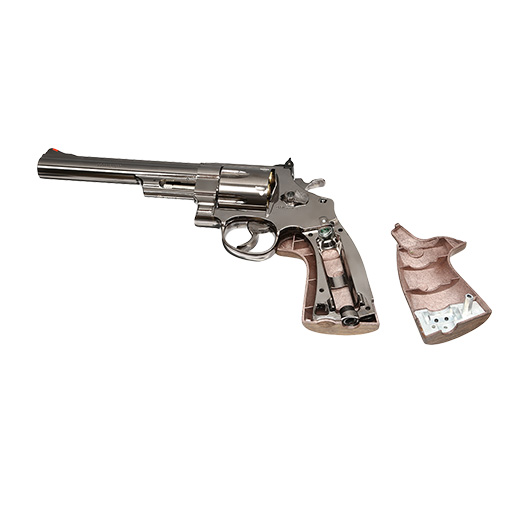 Der S&W M29 Revolver besitzt weiterhin ein Single- und Double-Action Abzugssystem sowie ein von außen einstellbares Hop-Up System. Vor allem die 6,5 Zoll mit langen Lauf überzeugt durch eine gute Präzision mit langer Visierlinie. Das hintere Visier kann zusätzlich in der Höhe und seitlich justiert werden.