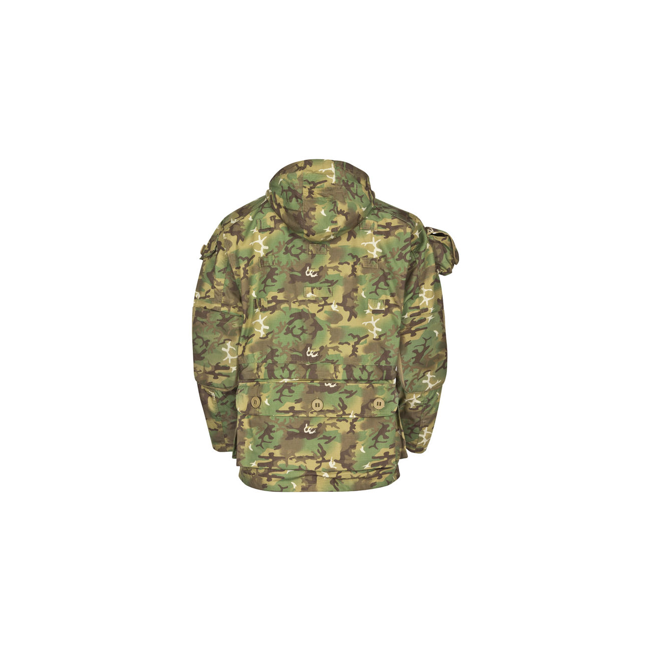 - Schlaufen auf Rücken und Schultern zum Anbringen eventueller Tarnmaterialien