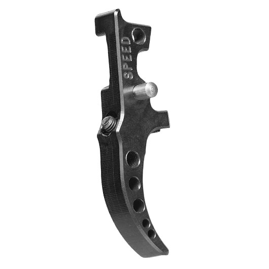 Der Speed Airsoft Tunable Abzug wird aus hochwertigem USA Grade Aluminium im CNC-Verfahren hergestellt. Durch zwei verstellbare Madenschrauben im Abzug kann der Winkel und Abzugweg besonders genau eingestellt werden und das ansonsten vorhandene Spiel eliminiert werden. Besonders interessant ist die Einstellung von außen, es muss dadurch für den Einstellvorgang nichts auseinandergebaut werden. Dank speziell entwickelter Schraubendruckfeder, kann auch weiterhin im halbautomatischen Schussmodus blitzschnell der Abzug betätigt werden.