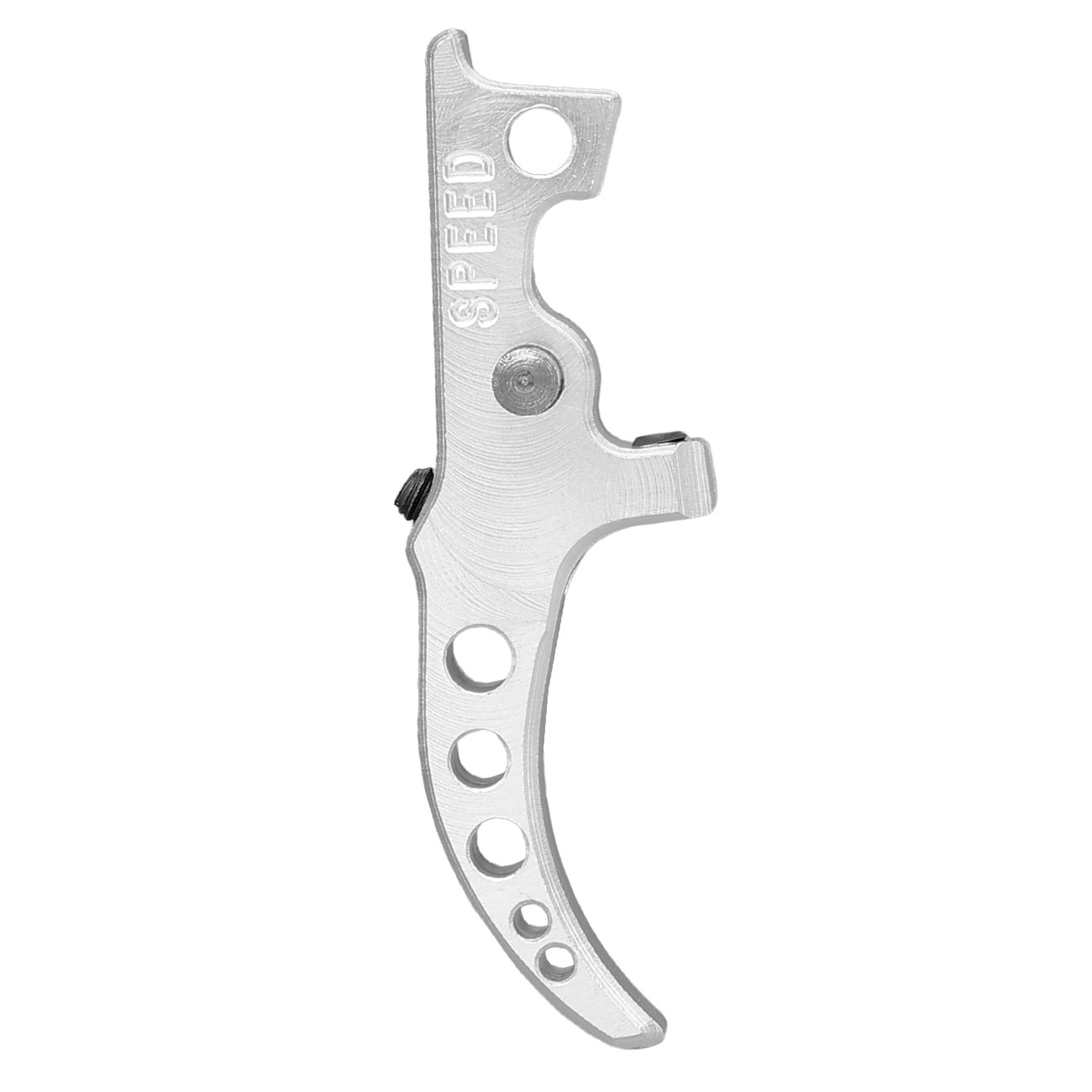 Der Speed Airsoft Tunable Abzug wird aus hochwertigem USA Grade Aluminium im CNC-Verfahren hergestellt. Durch zwei verstellbare Madenschrauben im Abzug kann der Winkel und Abzugweg besonders genau eingestellt werden und das ansonsten vorhandene Spiel eliminiert werden. Besonders interessant ist die Einstellung von außen, es muss dadurch für den Einstellvorgang nichts auseinandergebaut werden. Dank speziell entwickelter Schraubendruckfeder, kann auch weiterhin im halbautomatischen Schussmodus blitzschnell der Abzug betätigt werden.