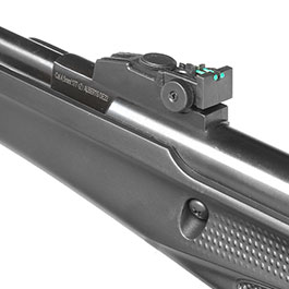 Ab Werk wird das Luftgewehr mit einer serienmäßigen, einstellbare Fiberoptik-Visierung ausgeliefert. Die Fiberoptik-Visierung ist mit einer hochwertigen Kontrastmarkierung ausgestattet und auch bei eher ungünstigen Lichtverhältnissen, wie z.B. bei Dämmerung gut erkennbar. Kimme in der Höhe und Seite einstellbar.