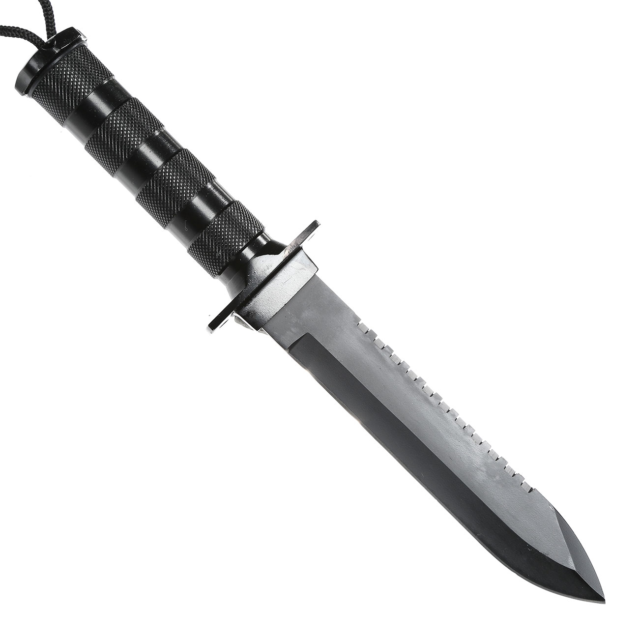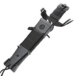 Das Messer besitzt eine schwarz-beschichtete Antireflex-Klinge aus rostfreiem Stahl. Auf dem Klingenrücken befindet sich eine Säge. Griff und Kappe sind aus rostfreiem Stahl. Die Verschlusskappe besitzt einen Kompass und eine Sicherheitsschnur zum Befestigen am Handgelenk. Der Hohlraum im Heft bietet Platz für eine Kapsel mit Überlebensgegenständen. Außerdem ist ein kleineres Beimesser/Skinner enthalten (ca. 12 cm lang und ca. 2 mm stark).