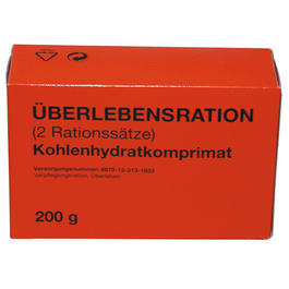 Sofort verzehrbar, kein Erhitzen oder Kochen notwendig. Die Survival Food Ration der Marke SURVIVOR bereichert jeden Outdoortrip und ist ebenfalls für den Notfall als Lebensmittelvorrat äußerst empfehlenswert. Angereichert mit lebenswichtigen Vitaminen und Mineralstoffen ist die Outdoornahrung und Überlebensnahrung extrem lange haltbar. Eine Packung enthält 125g und entspricht 575 kcal.