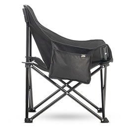 Dank verstärkter Gurte wird das Gewicht optimal verteilt, während der ergonomische, X-förmige Rahmen und der breite, gepolsterte Sitz komfortables Sitzen ermöglichen. Breite, rutschfeste Füße sorgen für Stabilität auf jedem Untergrund, und eine Seitentasche bietet praktischen Stauraum.