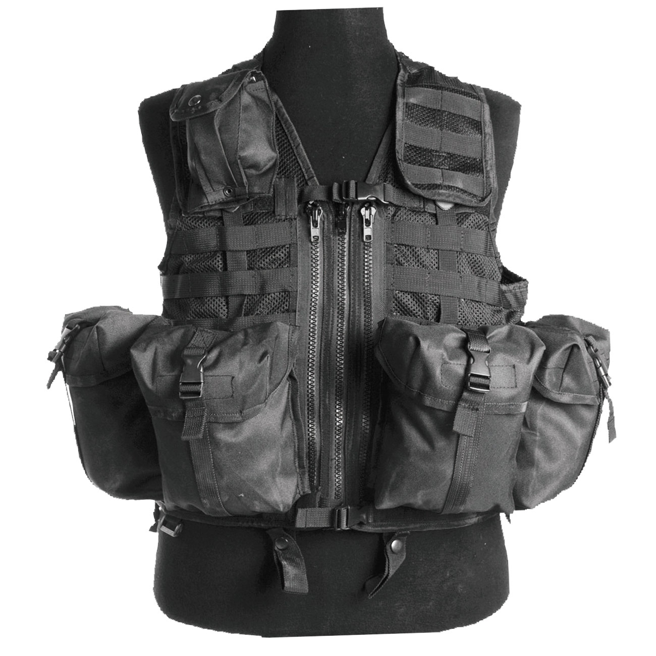 Modulartype-Weste inklusive 7 Taschen die wahlweise und individuell angebracht werden können oder durch andere Molle Taschen ergänzt bzw. ersetzt werden. Einheitsgröße, stufenlos verstellbar. Kunststoffschnellverschlüsse mit zusätzlichen Klettverschluss und Zurrgurten. Aufnahmeschlaufen zum Anbringen einer Lochkoppel.