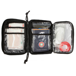 Um den Inhalt möglichst schnell erreichen, ist der Pouch mit zwei Reißverschlüssen an der Seite versehen. Die Klettfläche an der Vorderseite ermöglicht das Anbringen von Patches, Abzeichen oder Namensstreifen, um die Tasche beispielsweise auch nach außen hin als Erste-Hilfe-Tasche kenntlich zu machen. Ein Medic Klettpatch ist im Lieferumfang bereits enthalten.