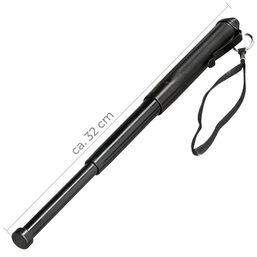 Klein, leicht und bequem zu tragen! Der Teleskopschlagstock ist mit seiner Länge von 12 Zoll besonders kompakt und kann durch seinen Metallclip an Hose, Gürtel, Jackentasche, oder ähnliches befestigt werden. So ist der Mini-Teleskopschlagstock immer schnell zur Hand.