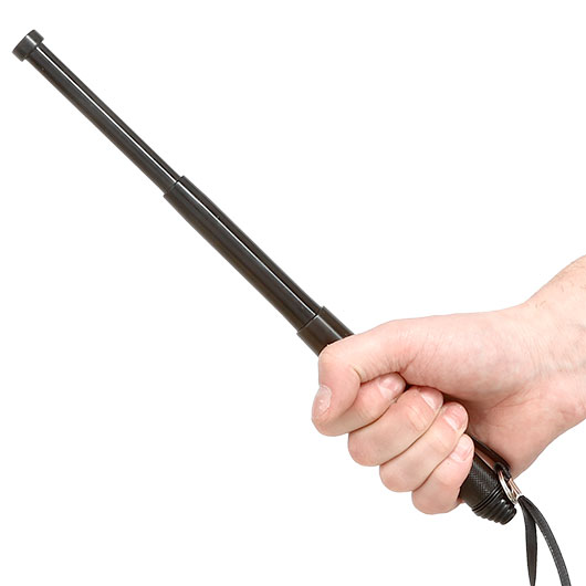 Praktisch ist auch, dass er sich, aufgrund seiner geringen Größe, im eingezogenen Zustand auch ideal als Kubotan verwenden lässt. Gefertigt ist er aus hochwertigem Stahl, was den kleinen Schlagstock sehr robust macht. Der Griff ist mit einer Struktur versehen, die für einen perfekten Halt sorgt.