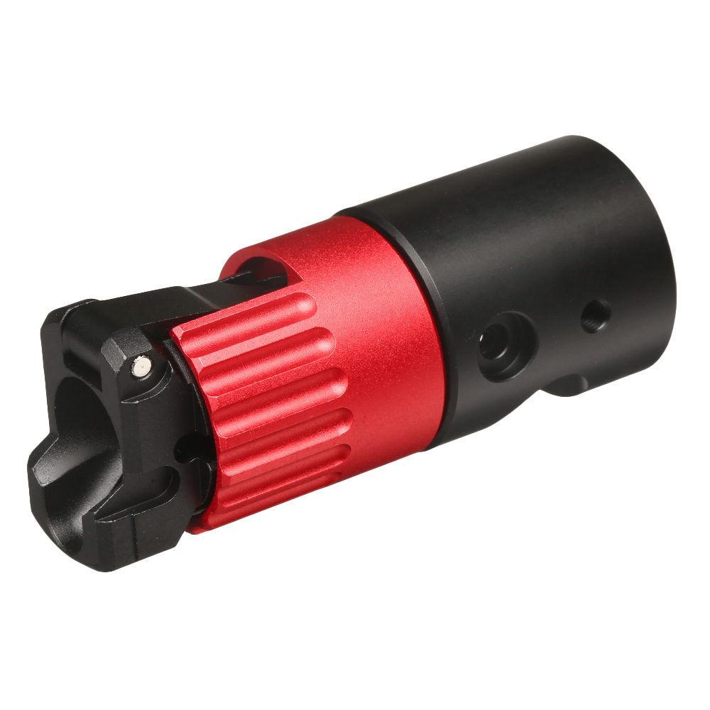 Das Grundgerüst des Hop-Up Aluminium Chambers von TTI Airsoft ist, ähnlich wie beim Action Army Chamber, aus CNC-gefrästem Aluminium hergestellt. Diese Eigenschaft sorgt für eine perfekte Passgenauigkeit. Das neuartige Hop-Up System ist mit innovativer Technik ausgestattet, wodurch die Einstellung über einen Drehring (ähnlich AUG oder G36 Hop-Up System) durchgeführt wird. Dank dieser Eigenschaft lässt sich das System besonders präzise justieren. Weiterhin sorgt der Chamber für eine zuverlässigere Zufuhr der 6mm BB Rundkugeln aus dem Magazin. Auch die Haltbarkeit und Zuverlässigkeit wurde durch das verwendete Material entscheidend gesteigert.