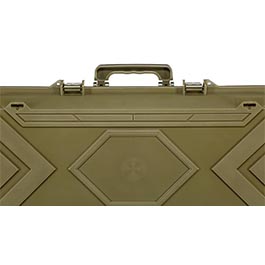 Zwei durchgehende Löcher sind neben den mittleren Verschlüssen eingearbeitet, sodass der Koffer mit Schlössern, Kabelbindern oder ähnlichem gegen unbeabsichtigtes Öffnen gesichert werden kann. Weiterhin sind Führungen vorhanden, um den Koffer mit zwei Gurten sichern zu können. Aufgrund dieser Eigenschaften eignet sich der Waffenkoffer ideal, um Waffen mit Zubehör sicher und gesetzeskonform verstauen oder transportieren zu können.