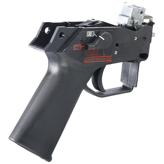 Die Abzugseinheit funktioniert nur im halbautomatischen Schussmodus und darf daher gegen die im Auslieferungszustand verbaute Einheit getauscht werden! Die angebrachten Markierungen dienen nur zu dekorativen Zwecken!