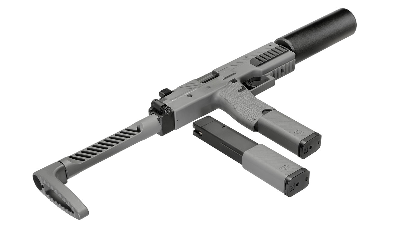 Praktisches Set mit 2 Magazinen und Aluminium-Silencer!