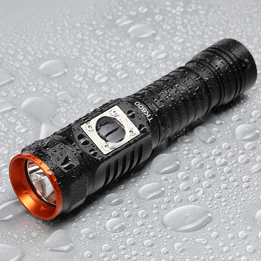 Die Vortex TK600 Taschenlampe ist eine Leistungsstarke LED-Lampe für den alltäglichen Gebrauch oder bei taktischen Einsätzen. Mit ihrer CREE XLamp XP-L LED leistet die TK600 Taschenlampe bis zu 600 Lumen. Der Akku wird über ein enthaltenes USB-Ladekabel (Typ-C) direkt geladen. Alternativ ermöglicht die eingebaute PCB Platine, in Verbindung mit der Gehäuseverlängerung die Verwendung von 2 Stück AA Batterien. Aber auch die Verwendung von nur einer einzigen AA Batterie ist möglich.