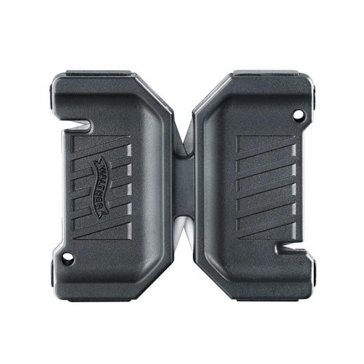 Der Walther Messerschärfer besitzt 2 verschiedene Schneidewinkel: einmal 17° und einmal 25°. Der CarbideSchleifeinsatz sorgt für die nötige Grundschärfe und die beiden weißen Keramikschleifeinsätze polieren die Klingen. Der Messerschärfer ist nicht für Wellenschliffklingen und beschädigte Klingen geeignet.