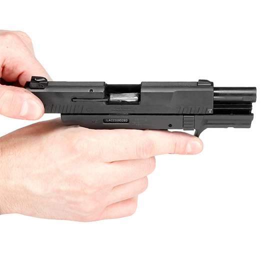 Um in Stresssituationen einen sicheren und schnellen Zugriff zu gewährleisten, besitzt die P22 Ready im Vergleich zur ursprünglichen P22 keine manuelle Sicherung, einen schlankeren Schlitten und stark ausgeprägte Durchladerillen.