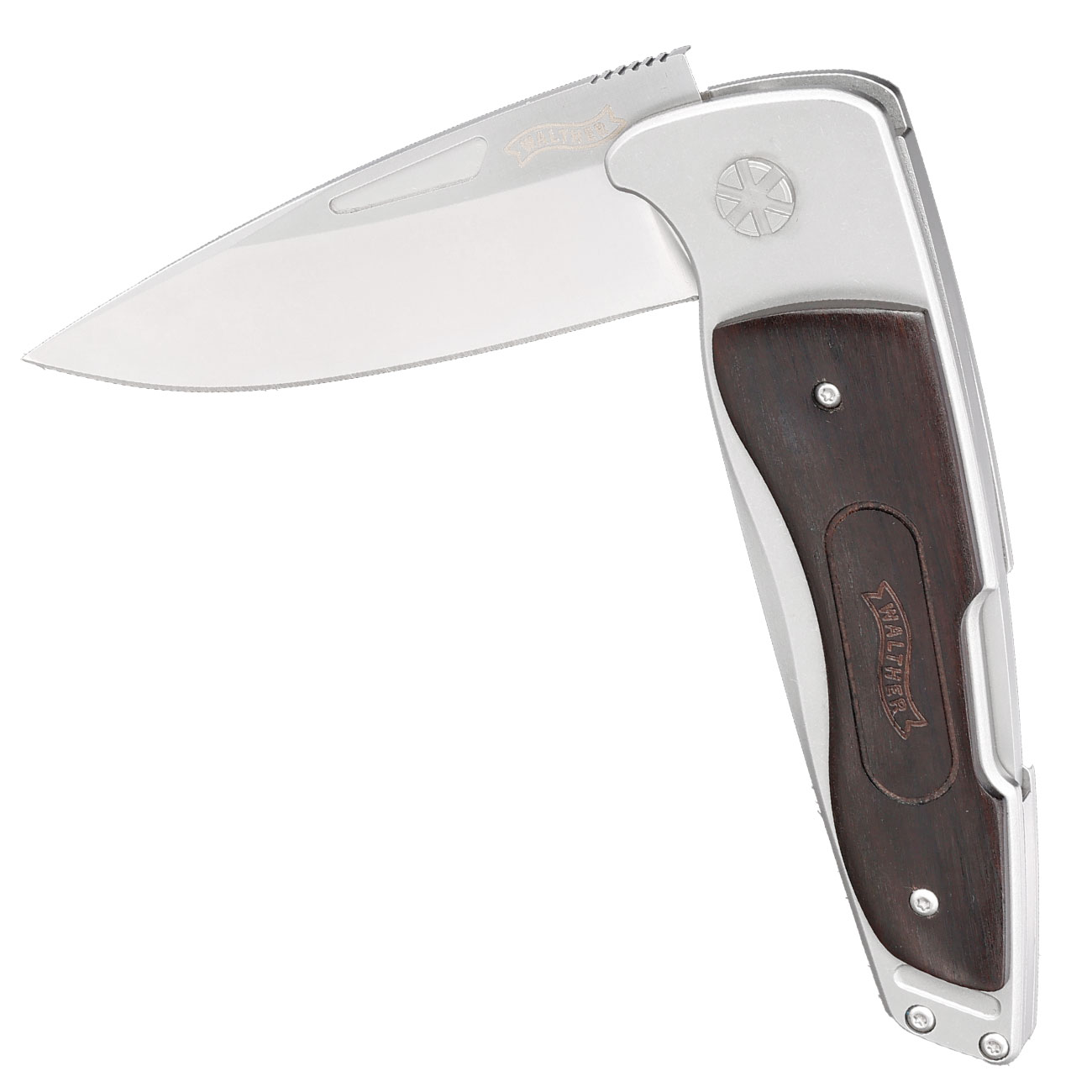 Das Walther TFW4 ist ein klassisches Taschenmesser für Abenteuerer. Es verfügt über eine Spearpointklinge aus stabilem AUS-8-Stahl mit guter Schnittfestigkeit. Die Klinge wird per Backlock-Sicherung sicher verriegelt.