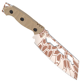 Das Survivalmesser von Wartech USA kommt mit bedruckter, rostfreier 440er Stahlklinge. Die grobe Struktur des Kunststoffgriffes liegt rutschfest und sicher in der Hand. Im Lieferumfang befindet sich eine Nylonscheide für den Gürtel, um das Messer zu transportieren.