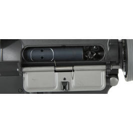 Wie bei fast allen hochwertigen S-AEG Gewehren besitzt auch das Wei-ETech M16A3 ein einstellbares Hop-Up System. Es handelt sich dabei um eine normale M4 / M16 Hop-Up Unit die sich unter dem Auswurffenster befindet. Zum Einstellen muss einfach der Spannhebel gezogen werden - das Hop-Up eingestellt werden - und danach der seitlich angebrachte Bolt-Catch gedrückt werden. Das Auswurffenster ist jetzt wieder verschlossen und das Hop-Up System vor Schmutz geschützt.