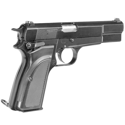 Maßstabsgetreuer Vollmetall-Nachbau der M1935 Hi-Power Pistole in der Mark III bzw. MK3 Ausführung. Diese Version der weltbekannten Pistole wurde im Jahr 1988 der Öffentlichkeit vorgestellt und ist ein verbesserter Nachfolger der bekannten M1935 Pistole, die bereits im 2.Weltkrieg von den Alliierten und Achsenmächten eingesetzt wurde. Die Hi-Power 9mm Pistole wird seit 1935 bis heute in immer wieder verbesserten Ausführungen hergestellt und wurde bzw. wird in über 50 Ländern eingesetzt.