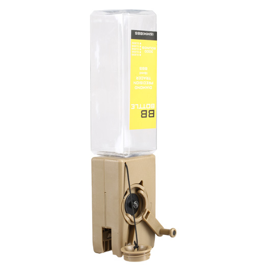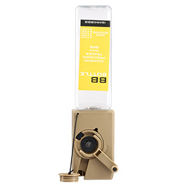 Um den Speedloader im Vergleich zur Vorlage von Odin Innovations kompakter zu gestalten, setzt WoSport auf ein kleineres Fach für BBs. Direkt am Speedloader können daher ca. 500 6mm BB eingefüllt werden. Reichen diese BBs nicht aus - z. B. um alle Magazine in der Safe-Zone zu befüllen, besitzt der WoSport Speedloader aber ein zusätzliches praktisches Feature. Wird der Deckel des BB-Faches abgeschraubt kann dort direkt die ebenfalls enthaltene BB-Flasche für bis zu 3000 BBs aufgeschraubt werden. Durch die angebrachte Flasche sind dann genug BBs vorhanden um größere Magazinvorräte zu befüllen.