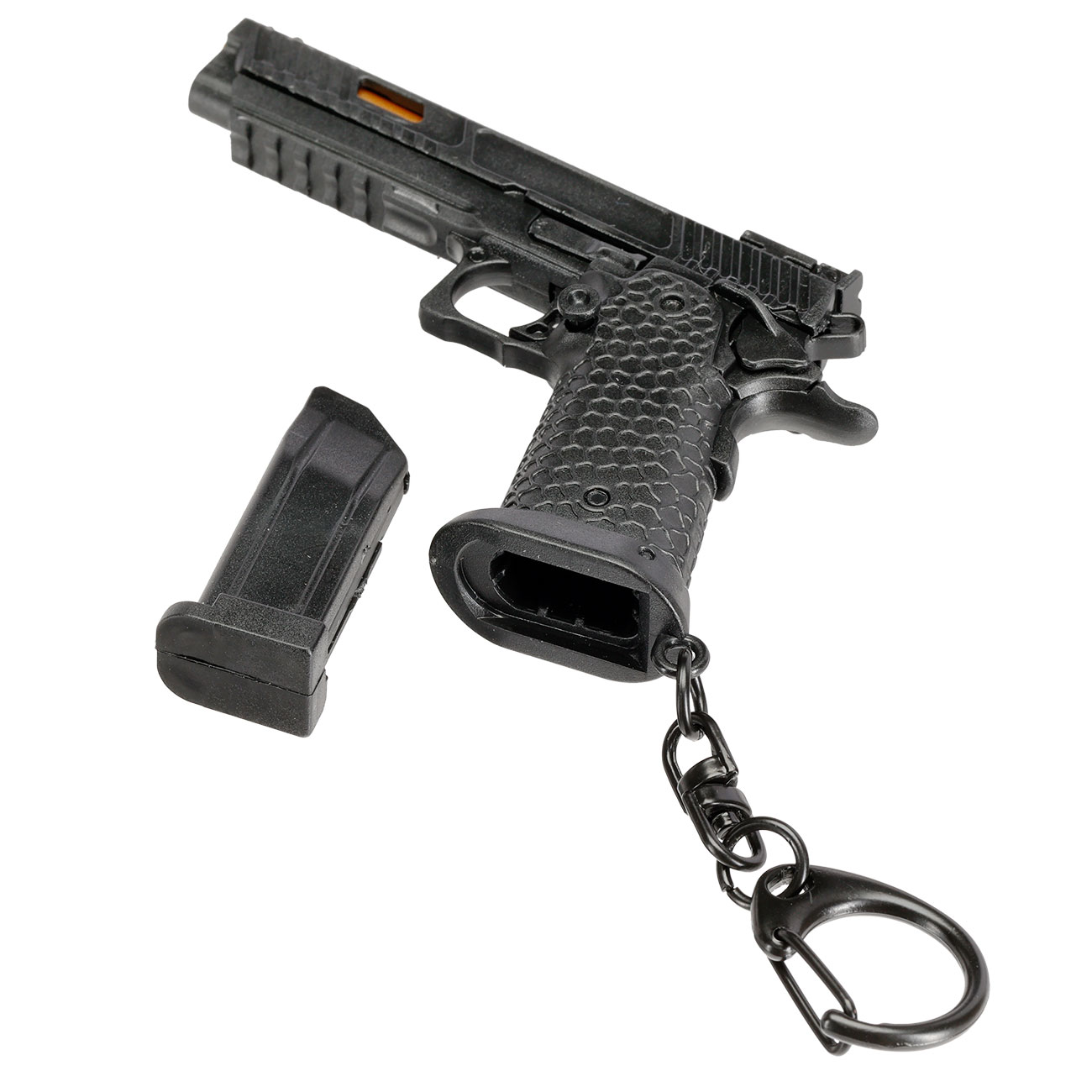 Ein abnehmbarer Schlüsselring rundet das schöne Pistolenmodell ab.