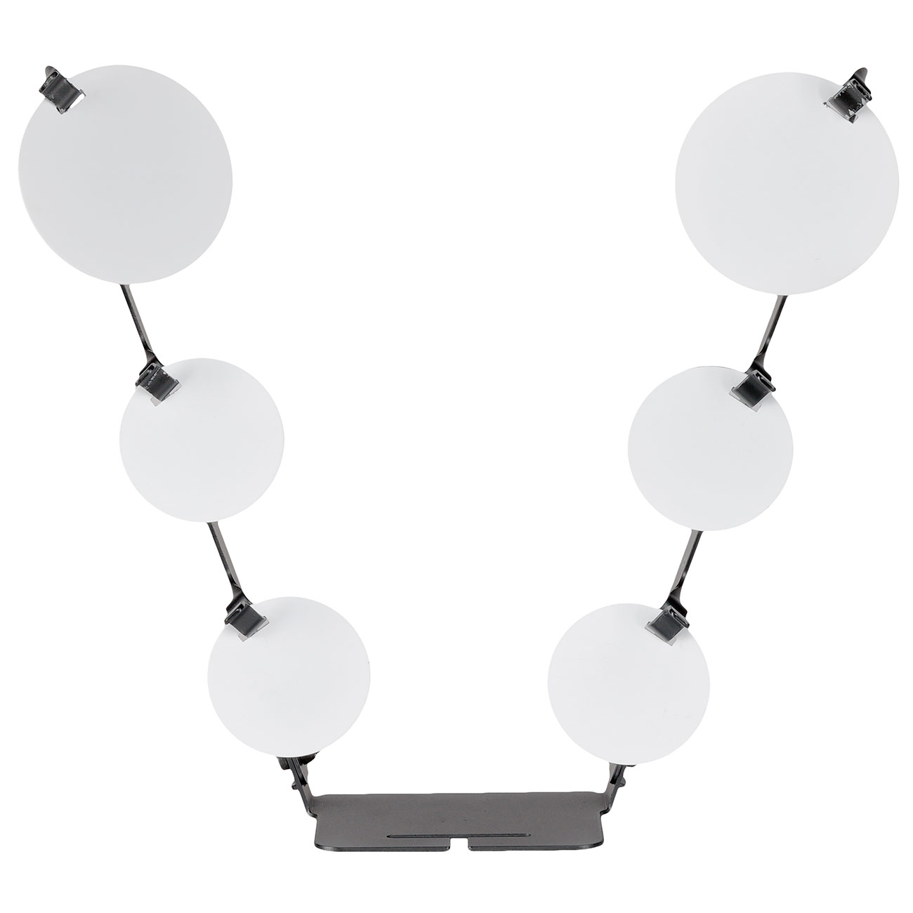 Aus Stahl gefertigte Pendelzielanlage von WoSport für den Einsatz von Airsoft und Luftgewehren. Die sechs Ziele sind aus ca. 1,6 mm starkem Stahl gefertigt und weiß lackiert. Durch das verwendete Material halten die Ziele auch dem Beschuss mit stärkeren Luftgewehren länger stand. Wird das Ziel getroffen, bewegt es sich, so dass ein Treffer deutlich sichtbar ist. Bei einem stärkeren Treffer schlägt die Zielscheibe gegen die Rückseite des Pendelständers, wodurch ein blechernes Geräusch entsteht.