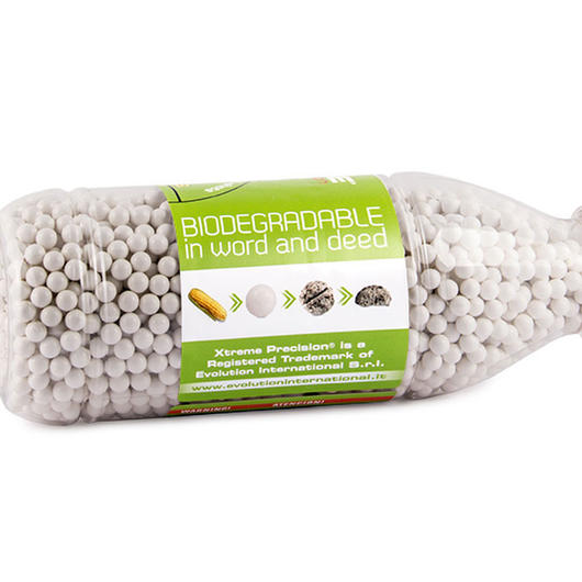 Die Xtreme Precision Biodegradable BBs werden zu 100% aus PLA Material (Getreide) hergestellt. Dieses geprüfte Material wird zu 100% durch natürliche Einflüsse (UV-Licht und Temperatur) von der Umwelt abgebaut.