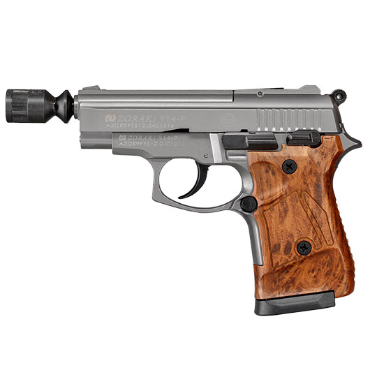 Details zu Zoraki 914 Schreckschuss Pistole titan mit Holzoptik-Griffschalen: