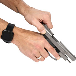 Zusätzlich verfügt das Modell über einen Single- und Double-Action-Abzug und Griffschalen aus schlagfestem Kunststoff. Dank ihrer kompakten Form liegt die Zoraki 914 äußerst gut in der Hand.