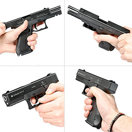 Die Schreckschusspistole besitzt einen Metallschlitten. Der kurze Abzugsweg, der über einen deutlichen Druckpunkt verfügt, ist angenehm bedienungsfreundlich. Mit nur wenigen Handgriffen lässt sich die Zoraki 917 in ihre Einzelteile zerlegen und kann so schnell und einfach gereinigt werden.